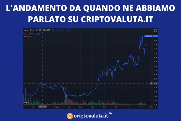 Una situazione che ha praticamente dell’incredibile – almeno se dovessimo paragonare l’andamento di $LUNA delle ultime settimane al resto del comparto. Segno di una forza incredibile e di segnali rialzisti che riassumeremo in questo specifico approfondimento domenicale.