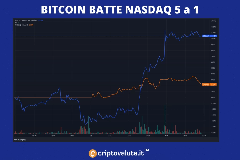 Centinaia di fondi e di società europee e americane che dovranno iscrivere a bilancio delle perdite nette molto importanti, dato che le azioni russe sono diventate invendibili e dato che tutti o quasi stanno cercando di liberarsene. Un terremoto anche finanziario, con il MOEX, la borsa di Mosca, che è rimasto chiuso e che ha visto però brillare, contro ogni aspettativa, proprio Bitcoin.