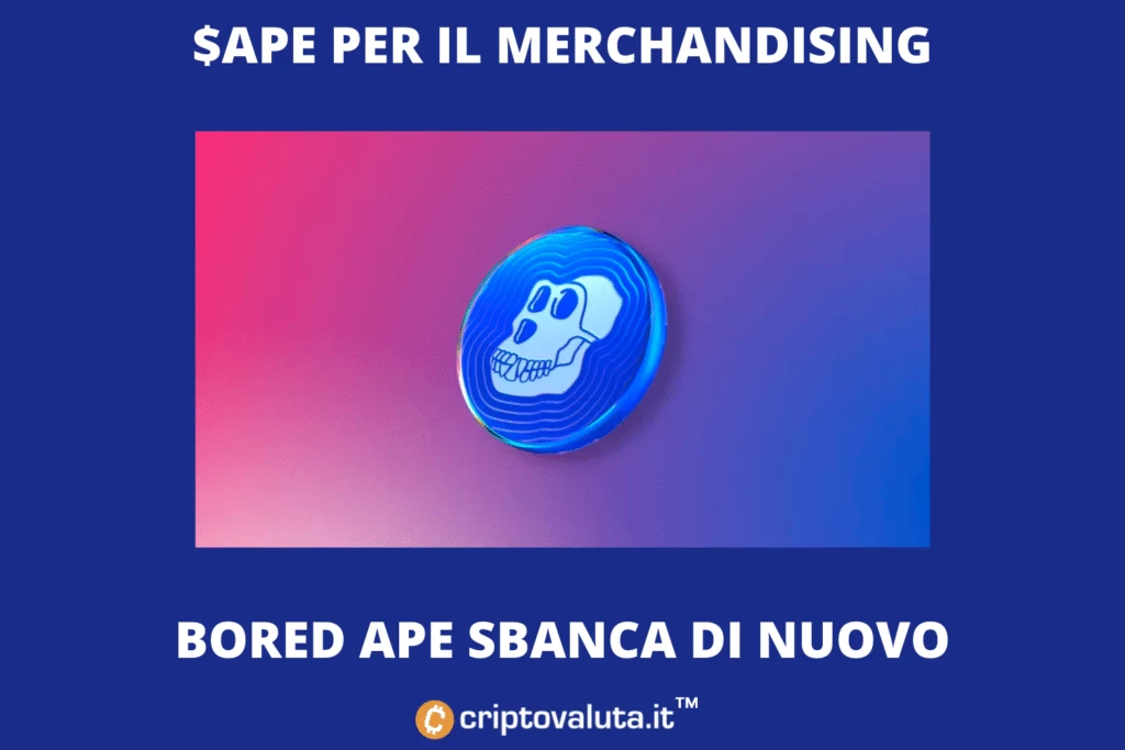 E questa è una mossa commerciale importante, tenendo conto del grande seguito che questo progetto di NFT ha. Chiunque vorrà acquistare il merchandising ufficiale del più esclusivo club del mondo cripto dovrà per forza di cose acquistare $APE, perché si tratterà dell’unica valuta accettata.