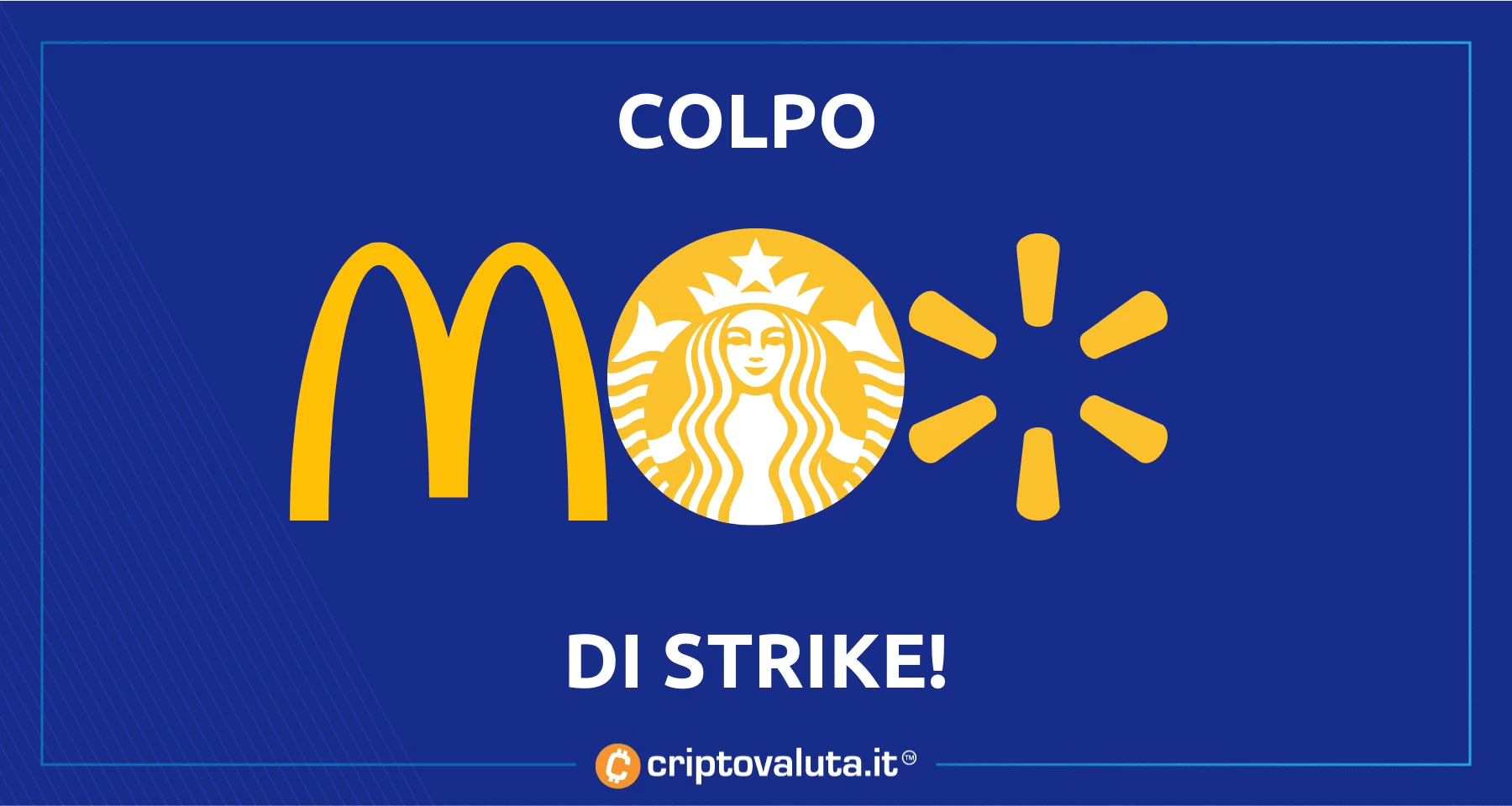 Poi è stato il turno di NCR, che è forse il più grande POS provider del mondo, il che porterà Strike ad essere supportato in punti vendita fisici come Starbucks,McDonald’s, Walmart, ma anche Macy’s, Staples, Lowe’s, Wendy’s e tanti altri che riportiamo nella nostra infografica.