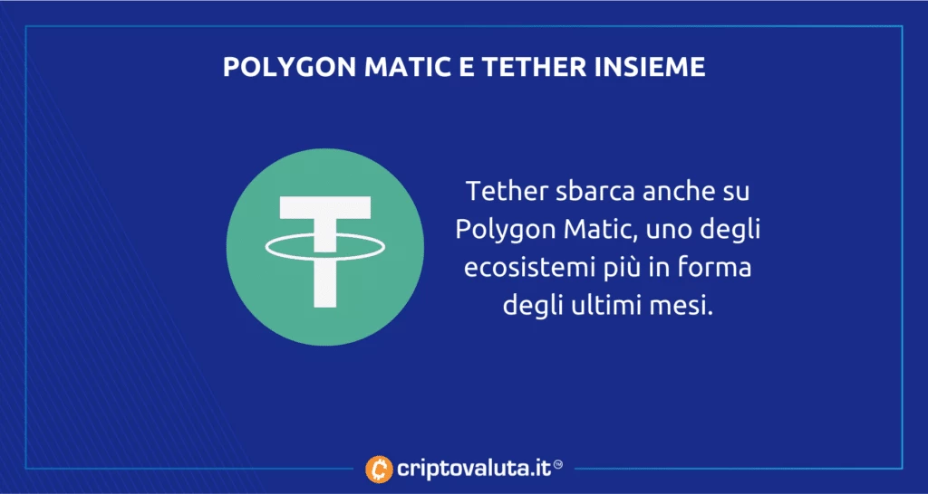 Tether arriverà all’interno di Polygon Matic, anche questa in uno stato di forma invidiabile, nonostante sia lontana dagli ATH, ovvero dai livelli di prezzo massimi raggiunti soltanto qualche mese fa.