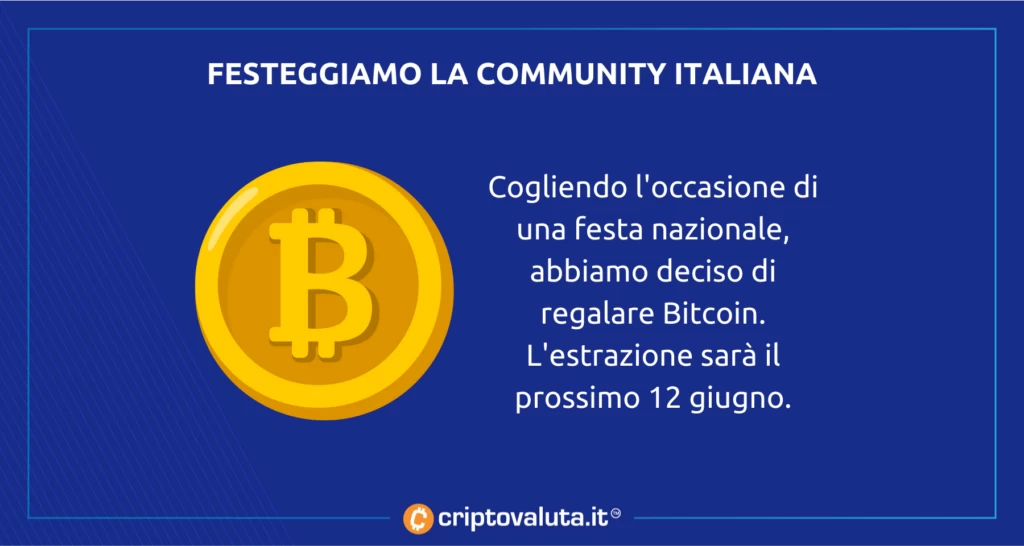 Festeggiamo insieme la grande community italiana che si riunisce intorno a Bitcoin, con quello che potrebbe essere un contest anche per avvicinare chi non ha ancora avuto modo di entrare a far parte di questa community o ad acquistare satoshi. Una community che abbiamo deciso di premiare in occasione di una festa nazionale in quello che sarà un ulteriore passo per stringerci intorno a $BTC.