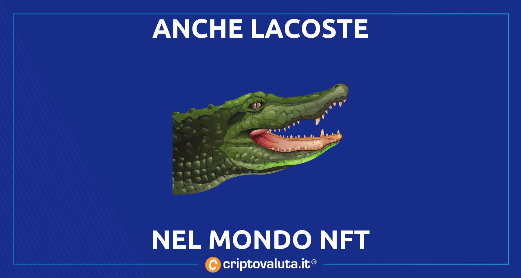 Torniamo ai nostri giorni e prendiamo quella sigla, L1212, con cui troviamo una non casuale assonanza: a partire da oggi, Lacoste lancerà 11.212 NFT che riprodurranno immagini uniche del famoso coccodrillo per venderle a una cifra che si aggira sui 100 dollari, a seconda delle fluttuazioni di mercato.