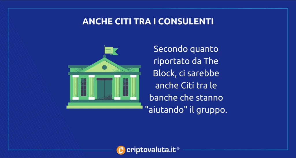 Non è però l’unica novità che riguarda il caso Celsius: sono stati infatti contattati diversi intermediari e legali per cercare mediazioni e per valutare le diverse opzioni che si hanno per rifinanziare il gruppo. Secondo quanto è stato riportato da The Block, addirittura sarebbe stata coinvolta Citigroup, già coinvolta all’interno dell’operazione di quotazione per la divisione mining Bitcoin del gruppo.