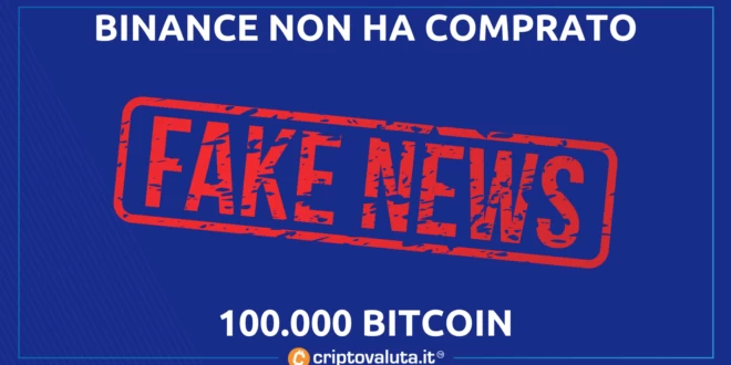 No, Binance non ha acquistato durante il dip del prezzo circa 100.000 Bitcoin e no, i movimenti in termini di cold wallet non sono affatto utili per capire questo tipo di operazioni. Ne avevamo la certezza ieri, dobbiamo avercela rinforzata oggi, dato che CZ stesso ha smentito l’acquisto.