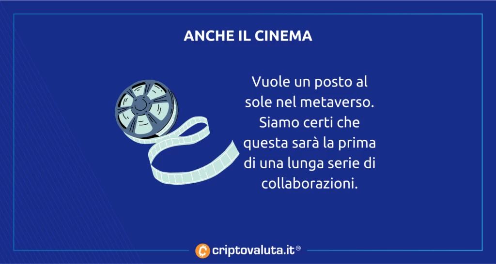 Cinema che torna quindi a esplorare, seppur in una declinazione più ludica, le opportunità offerte dal Web3 in senso più ampio. Non molto tempo fa vi abbiamo raccontato di Anthony Hopkins e della sua cripto-svolta con tanto di estensione Ethereum al suo account ufficiale Twitter, e di Spike Lee che aveva scelto la stessa criptovaluta per finanziare produzioni indipendenti.