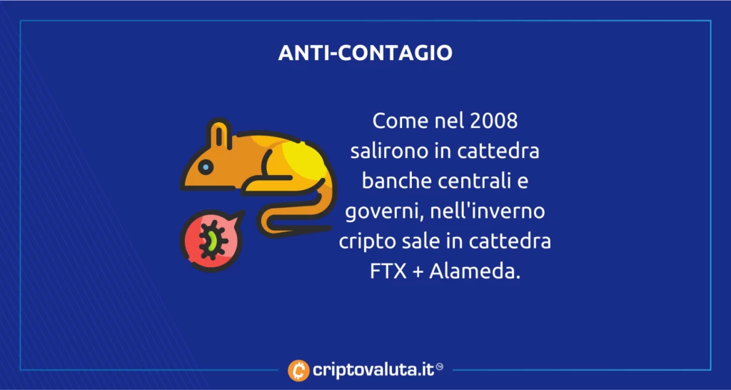 Un caso? No, un piano preciso, che è stato già enunciato pubblicamente da Sam Bankman-Fried – ovvero la possibilità per FTX e per gli altri satelliti del gruppo che hanno liquidità di intervenire per fermare il contagio e per evitare ulteriori problemi all’intero comparto, a partire da Bitcoin per finire poi su protocolli meno liquidi.