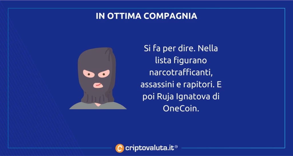 Vuol dire che si intensificano le attività di indagine, data anche la corposa taglia su informazioni che possano condurre alla cattura di Ruja Ignatova. La somma viene messa a disposizione anche per cercare di creare qualche crepa tra le persone che la stanno aiutando a nascondersi. Fanno gola e potrebbero aiutare ad arrivare alla soluzione di situazioni complesse per chi magari non è più contento di offrirle protezione.