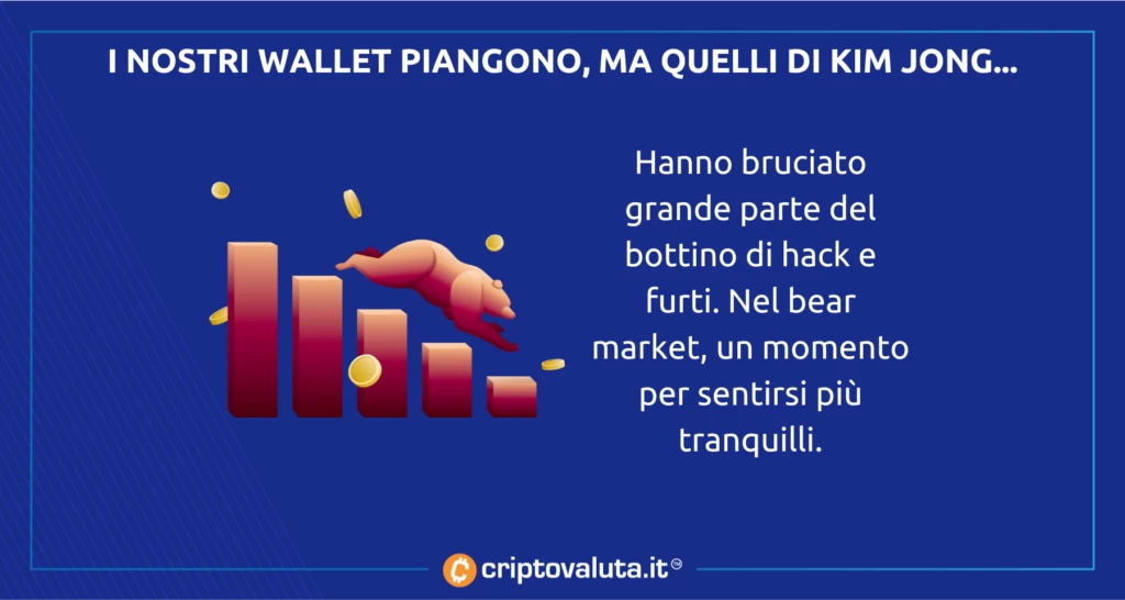 Il bear market non accenna a trovare la strada del letargo. A farne le spese tra gli altri la Corea del Nord, che forte di un wallet di stato particolarmente nutrito, si ritrova a fare i conti con un controvalore orami irrisorio.