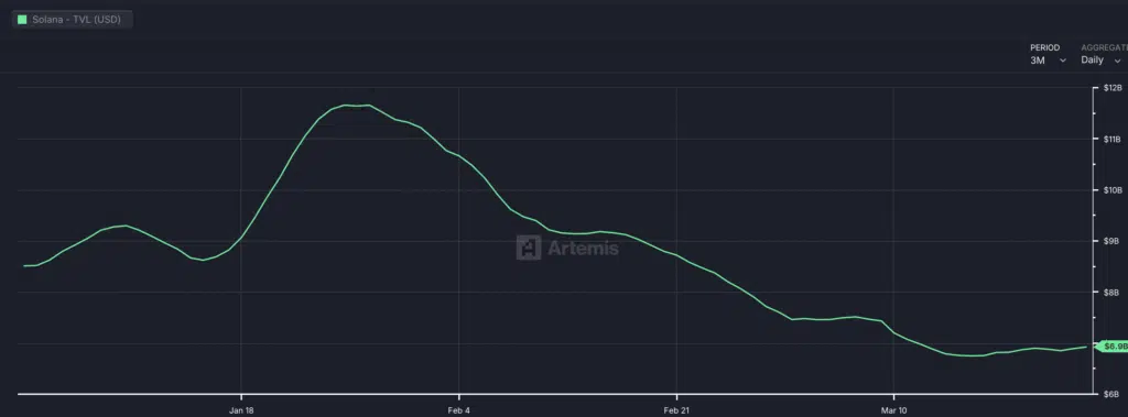 Il Total Value Locked attuale di Solana si attesta a 15,13 miliardi di dollari, in lieve calo dell’1,61% nelle ultime 24 ore secondo DeFiLlama.