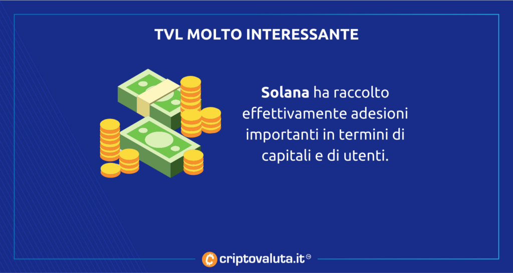 La blockchain di Solana è nota per la sua capacità di offrire transazioni veloci e a basso costo, infatti va sottolineata la sua costante crescita in ambito DeFi che accompagna quella del prezzo ormai da oltre un anno.