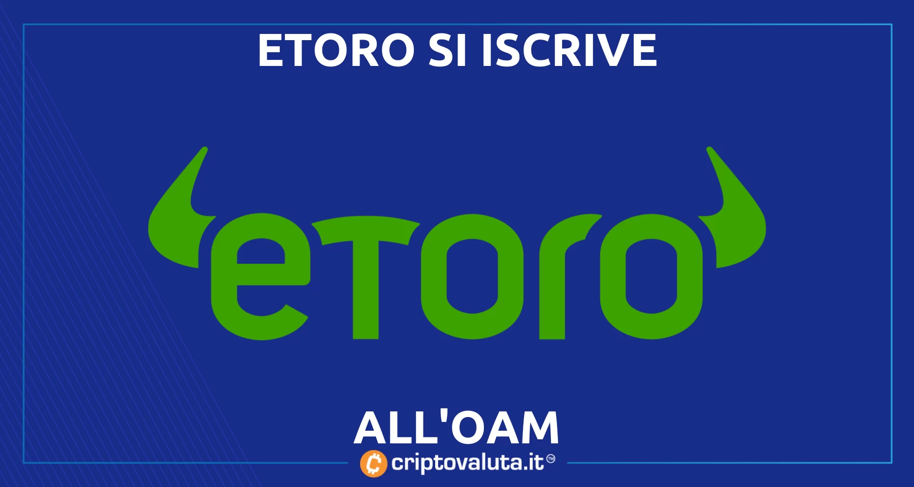 eToro ha ottenuto l’ok alla registrazione presso OAM, l’ente che mantiene appunto il registro anche per quanto riguarda gli operatori del mondo cripto e che sarà con ogni probabilità di transizione verso una disciplina maggiormente omogenea a livello europeo in futuro. Una registrazione della quale avevamo già ampiamente parlato in relazione agli exchange che si erano mossi in anticipo.