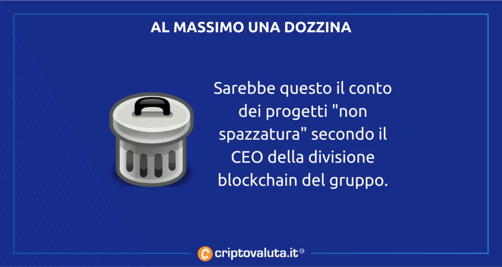 A parlare è Umar Faroow, che è CEO della divisione blockchain del gruppo, che indica come una dozzina i progetti che hanno un senso e che potranno avere un futuro. Un’opinione forse troppo forte, ma che racconta una realtà simile all’ultima crisi tra 2017 e 2018.