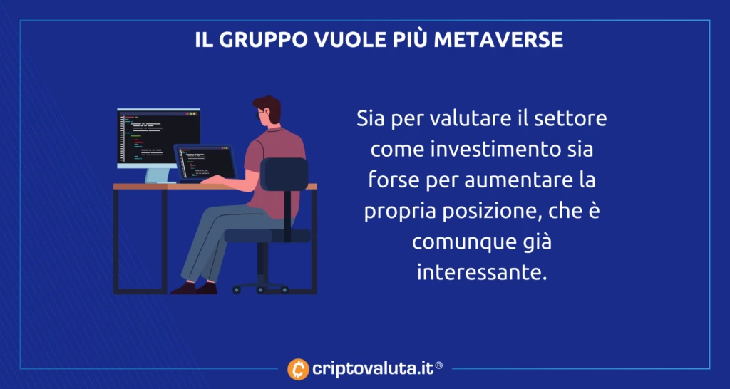Un’apertura al mondo dei Metaverse che arriva dopo investimenti anche corposi nel mondo delle cripto classiche. E un ottimo segnale per tutto il settore, che troviamo anche da eToro – vai qui per ottenere un conto virtuale gratuito e senza limit nei SERVIZI PREMIUM – intermediario che propone un listino di 78+ cripto e servizi esclusivi che non possono essere trovati altrove.
