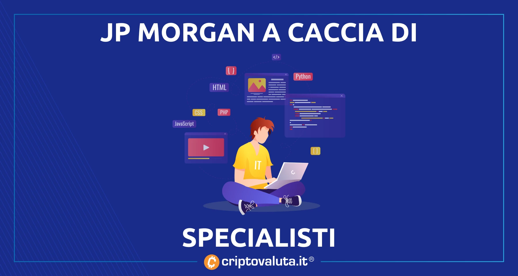 È a loro che J.P. Morgan Payments si rivolge: la banca è alla ricerca di un Vice President Payments Business Development Manager da inserire nel sottosettore verticale dedicato a Web3, Crypto, Fintech e Metaverse, stando a quanto riportato nell’annuncio LinkedIN.