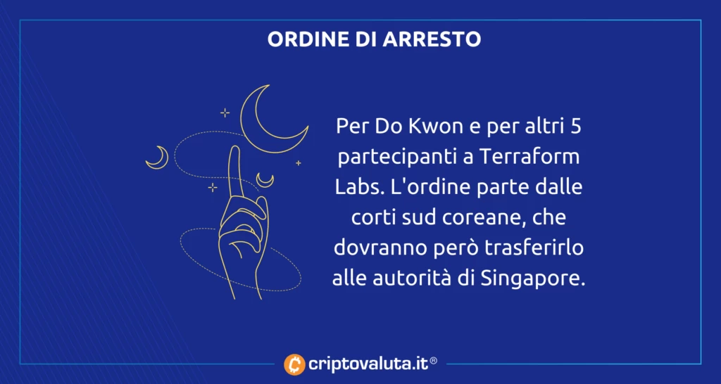 Si tratterebbe di un mandato di arresto che tra le altre cose non riguarderebbe soltanto Do Kwon, ma anche altri 5 dirigenti di Terraform Labs, i cui dettagli però non sono stati resi pubblici. Mandato che sarà però complicato, perché sempre secondo le corti tutti e sei i soggetti sono attualmente a Singapore. Il tutto però condito anche dalla promessa fatta tempo fa da parte di Do Kwon di collaborare con le autorità quando se ne sarebbe presentata l’occasione.