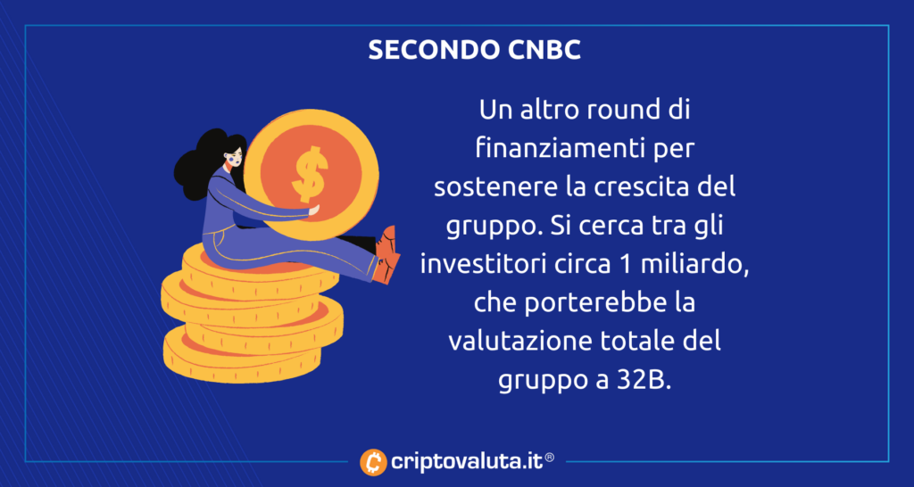 Il tutto però secondo voci che devono essere ancora confermate dall’exchange e che sarebbero frutto, afferma sempre CNBC, di quanto recuperato da persone informate dei fatti. Una storia comunque credibile e che a nostro avviso colloca la valutazione di FTX, crypto exchange in grado di raccogliere commissioni importanti dai suoi numerosi utenti, su livelli realistici.