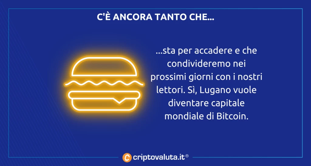Città che ne diventerà capitale non solo grazie a queste iniziative, che in altri luoghi del mondo hanno un po’ lasciato il tempo che hanno trovato, ma grazie a tante diverse iniziative delle quali potremo rendervi edotti, anche in anticipo rispetto a quanto verrà poi comunicato alla conferenza dedicata al Lugano Plan B per la fine di Ottobre.