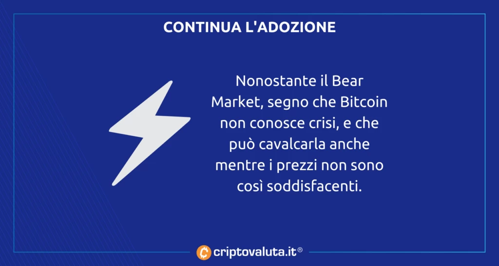 Due parti di una notizia che dovrebbe dirla lunga, al netto delle difficoltà naturalmente insite in un bear market, dell’ecosistema Bitcoin. Un ecosistema che in troppi danno per spacciato e che invece continua ad aggiungere mattoni alla sua costruzione, pronto a crescere giorno per giorno e ad affermarsi sempre di più.