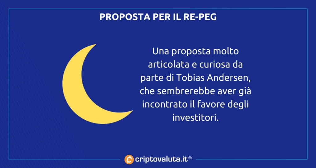 La proposta è piuttosto interessante e andrà analizzata in diversi degli aspetti che sono stati diffusi appunto dallo sviluppatore principale del progetto, per il repeg dello stablecoin legato al progetto.