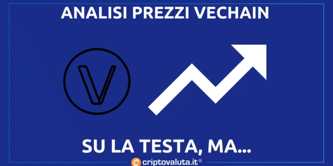 Le quotazioni di VeChain (VET) stanno attraversando dal 4 ottobre scorso una fase di debolezza, inserita tuttavia in un contesto di laborioso recupero che sta proseguendo dalla fine di settembre. Proprio il 21 settembre scorso, la crypto aveva raggiunto minimi a 0.0214 nel cambio contro dollaro americano, prima di avviare una lenta reazione che finora è riuscita a spingersi solo fino a 0.0244.