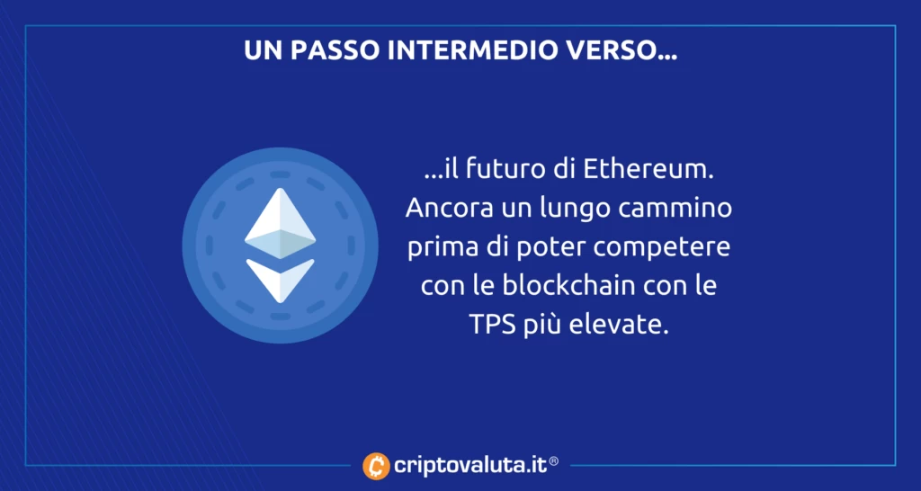 Obiettivo finale è arrivare a 100.000 transazioni al secondo, secondo quanto dichiarato da Buterin. Più in generale, in un panorama sempre più competitivo, Ethereum dovrà sicuramente lavorare per mantenere il proprio primato ed evolversi continuamente per non rimanere indietro rispetto ai numerosi e agguerriti concorrenti. A nostro parere il progetto rimane solido e mantiene ben salda la sua posizione dominante su tutti gli altri.