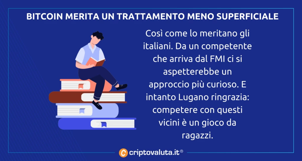 In pochi in Italia, nonostante sia ben visibile nella bio del senatore eletto tra le fila del PD, a conoscere i trascorsi al Fondo Monetario Internazionale. C’è qualcosa di male? Niente affatto. Rimane però l’allineamento quasi completo con le posizioni della potente istituzione sovranazionale nell’attaccare Bitcoin.