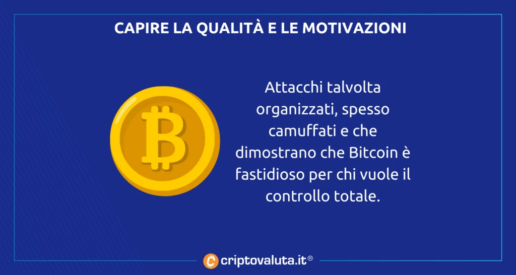 Un decalogo a nostro avviso più che mai necessario, perché soltanto attraverso la conoscenza delle vere motivazioni di chi attacca Bitcoin riusciremo a capirne la portata rivoluzionaria, l’importanza per il futuro nostro personale e dell’umanità e anche le possibilità che vinca una battaglia molto dura.