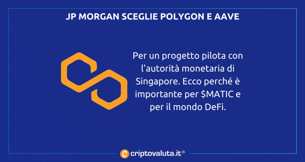 Un progetto interessante, anche se ancora in fase embrionale. Parliamo di JP Morgan che all’interno di un test con l’autorità monetaria di Singapore ha deciso di utilizzare i servizi che vengono offerti da Polygon e ricorrendo ad una versione modificata del protocollo di AAVE. Un passo in avanti importante per tutto il comparto della DeFi, per quanto in molti – a nostro avviso sbagliando – ritenevano che le banche ne sarebbero state sconfitte.