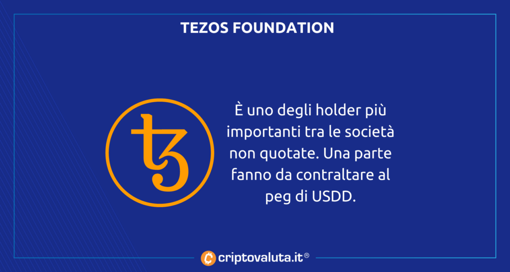 Situazione molto più difficile da verificare per quanto riguarda società non quotate e fondazioni. Tolta l’annosa questione di MT. Gox e della gestione privata di Block.One, a risaltare sono le dotazioni della Tezos Foundation. Sì, è la fondazione che gestisce Tezos e che utilizza quei 24.808 almeno in parte per mantenere il peg di USDD, al quale però sembrerebbero destinati soltanto, si fa per dire, 13.040 BTC, secondo le statistiche che sono disponibili direttamente sul sito internet del progetto.