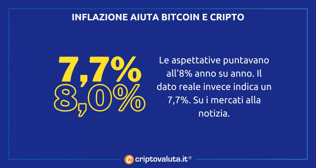 Per chi dovesse provare a fare trading in questo momento, che si tratti di Bitcoin oppure ancora del mercato cripto o di quello azionario, è sempre consigliata la massima attenzione. Le ore subito successive ai dati sull’inflazione sono sempre tra le più turbolente. Per quanto il dato possa essere considerato correttamente come positivo.