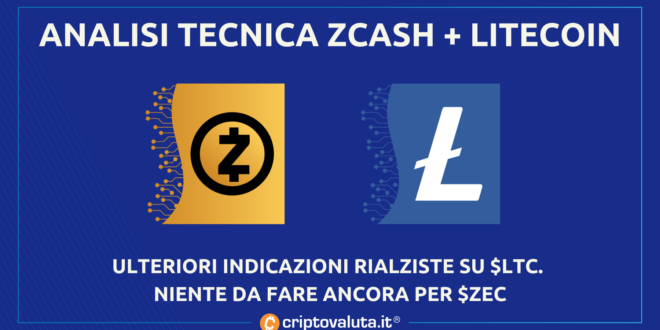 Le resistenze si trovano adesso a 40.40/40.65 ed a 45.00/45.40, punti di probabile ripiegamento in caso di nuovi recuperi. Le proiezioni, come anticipato, sono ancora ribassiste, ma il target va aggiornato a 30.40. Il segnale tecnico è short su nuovi test delle resistenze, in ogni caso da rilevazioni non inferiori a 39.70. Lo scenario verrebbe annullato e rivisto solo nell’eventualità di rottura della seconda resistenza, mediante una chiusura su grafico a 30 minuti superiore a 45.40. Quando sono le 16.33 CET di martedì 22 novembre, ZEC viene scambiata sui migliori exchanges mondiali a 38.93 dollari, in aumento del +3.54% su base giornaliera.