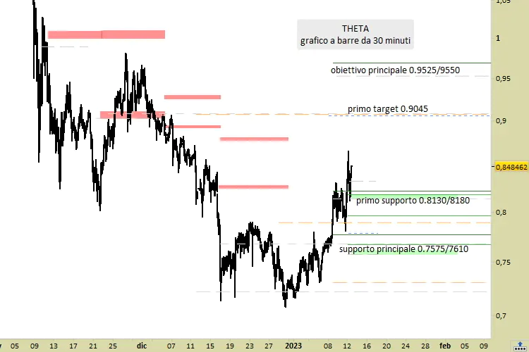Teniamo innanzitutto presente che il recupero in atto su questa crypto non è un fenomeno isolato, in quanto la maggior parte delle valute più popolari ha ricalcato da dicembre in poi la medesima trama di rimbalzo. Nel caso specifico, Theta aveva peraltro raggiunto anche il target ribassista principale indicato con le più recenti analisi.