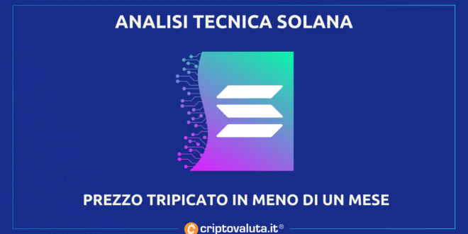 Ricordiamo che Solana proviene da una fase di potente rialzo che si è sviluppata subito dopo il raggiungimento di minimi a quota 8.00, lo scorso 29 dicembre. In meno di un mese, la crypto ha riacquistato il +231% di valore, per cui è abbastanza plausibile che ora si possa andare incontro ad una fase correttiva, un po’ più ampia e durevole delle fisiologiche 2-3 giornate di flessione.