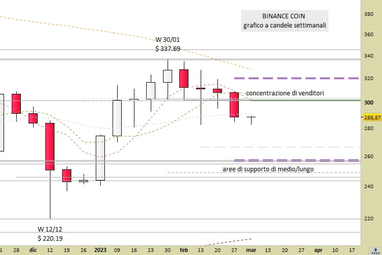 Dal lato dei fondamentali non possiamo segnalare particolari notizie riguardo a BNB, in grado di modificarne in questo momento l’oscillazione. Va però sottolineata l’atmosfera pesante che si sta creando attorno all’intero mercato crypto a causa dei ripetuti attacchi dal mondo della finanza americana (leggi Fed). Ne abbiamo parlato anche in un apposito approfondimento appena poche ore fa.