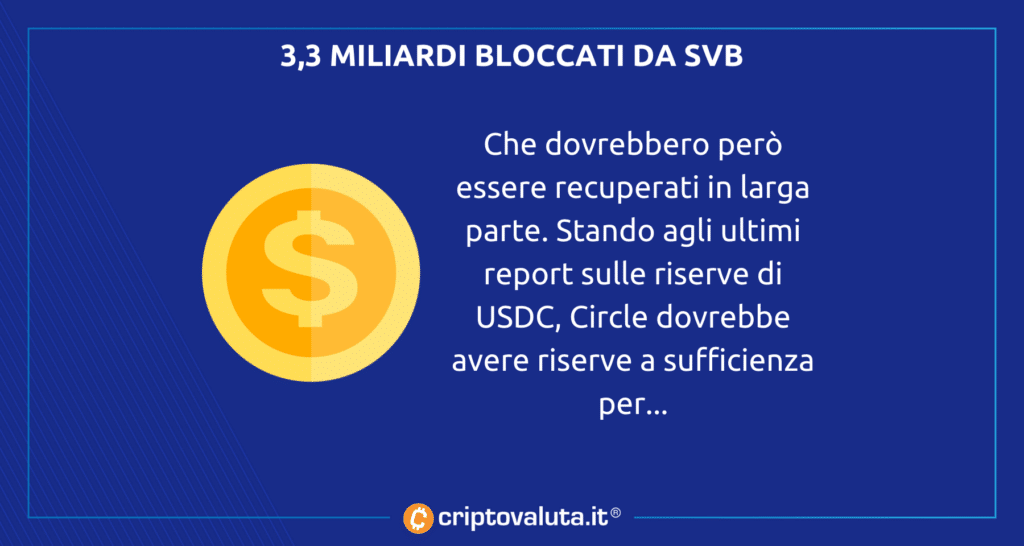 Intervento federale o meno, i 3 miliardi che Circle ha presso SVB saranno recuperati, probabilmente senza neanche un generoso haircut. Per ora si parla della possibilità che i depositanti perdano tra il 10% e il 20%, essendo la banca in larga parte solvente, almeno secondo le ultime notizie.
