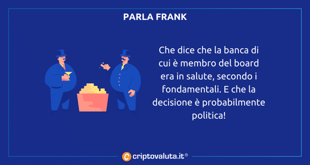 Secondo altri rumors anche parte dei regolatori hanno avuto difficoltà a comprendere le motivazioni della chiusura della banca manu militari, dato che appunto non ci sarebbero state ragioni di carattere fondamentale. L’intervista completa, della quale vi proporremo ancora degli stralci, si può leggere in inglese da CNBC.