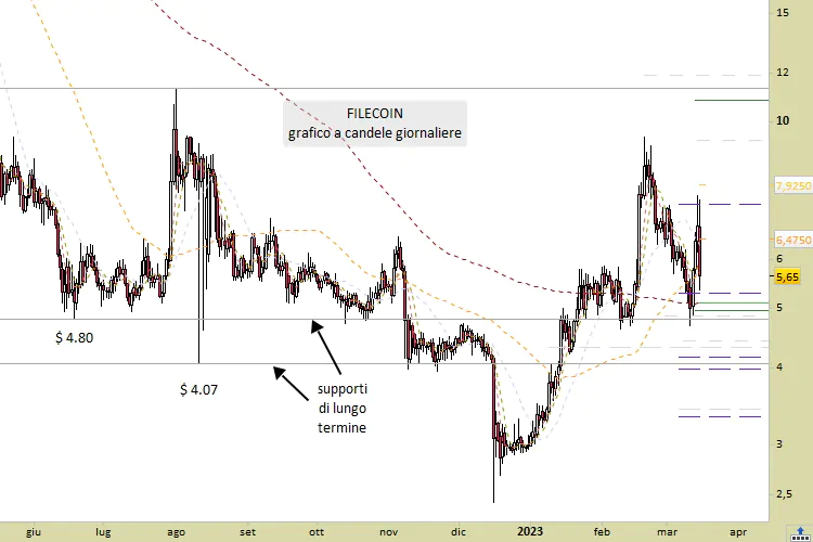 Appena ieri, Filecoin aveva raggiunto un picco relativo a quota 7.61, completando una fase di rimbalzo del +62.61% che si era sviluppata in meno di quattro giornate, a partire dai minimi di sabato scorso 11 marzo.