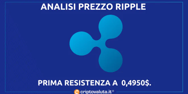 Sul grafico è evidente anche la resistenza principale a 0,60$. Con il suo break out si avrà una conferma piena di un tentativo di inversione del trend.
