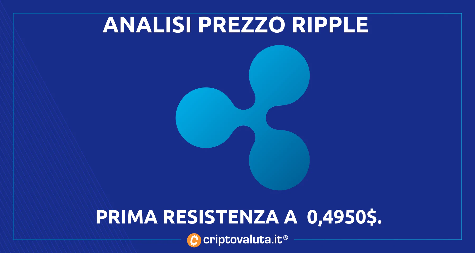 Possiamo constatare che Ripple qui è arrivato ed ora sta provando un rimbalzo. Per ripartire deve andare sopra la resistenza di breve a 0,49100$.