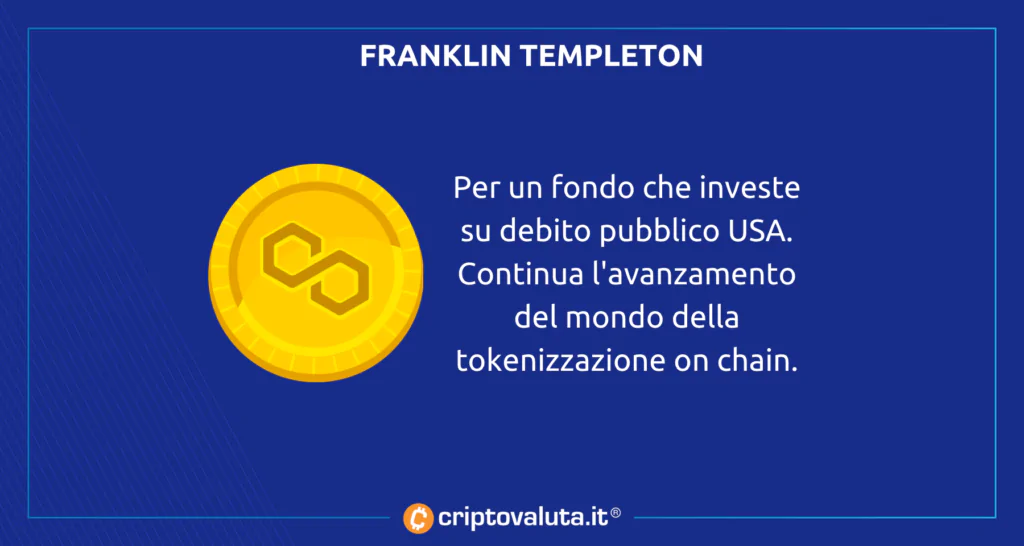 Franklin Templeton – importante gestore di capitali – ha annunciato il lancio del suo Franklin OnChain US Government Money Fund – ticker FOBXX – che sarà il primo fondo registrato negli Stati Uniti a utilizzare una blockchain pubblica. La scelta è ricaduta su Polygon Matic, blockchain l2 di Ethereum che ormai da tempo ha iniziato a attirare interlocutori di una certa importanza anche sul piano finanziario.