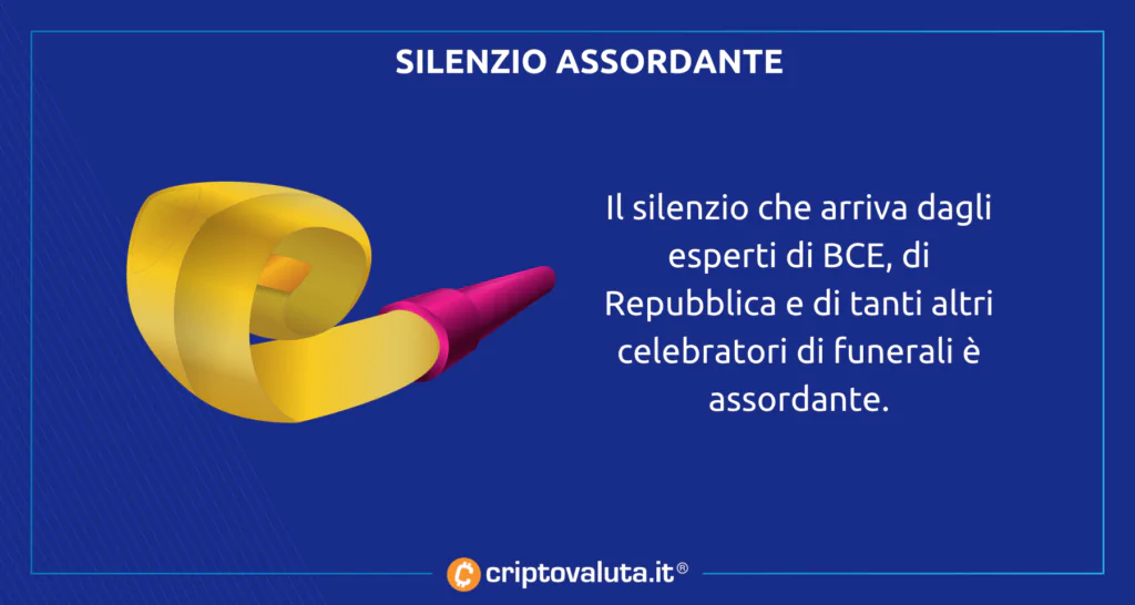 Chi ha shortato le opinioni dei due specialisti di Francoforte – tutti presi a difendere Euro Digitale e altri strumenti monetari più utili a loro che al proverbiale uomo della strada – oggi conta guadagni per quasi il 100%. Niente male per un ultimo atto. Niente male per gli ultimi sussulti prima, citiamo a braccio, dell’inevitabile irrilevanza.
