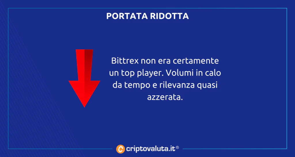 Gli appassionati di criptovalute e Bitcoin si sono trasformati, volenti o nolenti, anche in esperti di procedure fallimentari negli Stati Uniti. Dopo il caso più celebre di FTX, ora si aggiunge anche quello di Bittrex, exchange di criptovalute più conosciuto per la sua storia che per la sua forza attuale, con un declino nel market share che si protrae da anni.