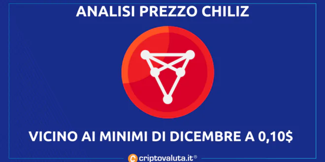 Oggi constatiamo che il supporto a 0,12$ è stato rotto ed abbiamo avuto l’accelerazione ribassista. Il prezzo di CHZ negli ultimi giorni si è avvicinato a 0,10$ fermandosi ad un minimo a 0,1026$.