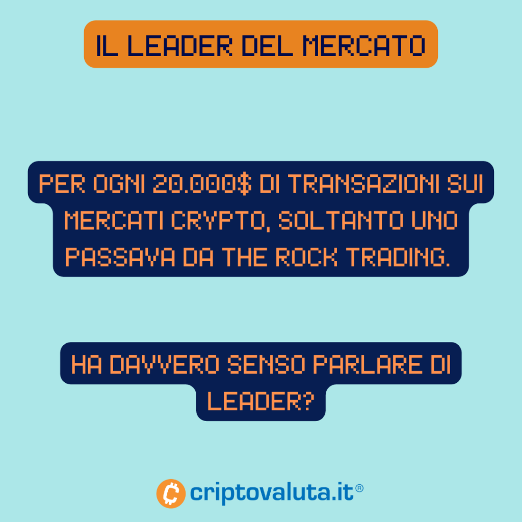 Numeri troppo grandi? Per ogni 20.500 dollari scambiati sul mercato crypto, uno di questi passava da The Rock Trading. Alla faccia del leader.