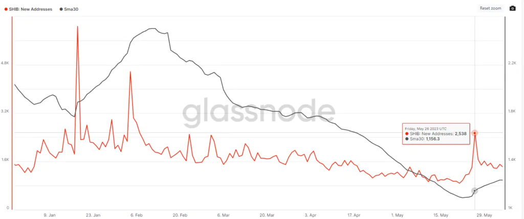 Si noti che solo il 26 Maggio sono stati creati 2.538 nuovi indirizzi SHIB. Questa situazione ha fatto segnare l’aumento più elevato negli ultimi 3 mesi. Al contempo possiamo vedere come da metà Maggio, Shiba a superato la media a 30 giorni relativa ai nuovi indirizzi.