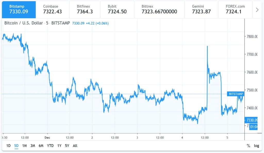 Tuttavia, Bitcoin non è riuscito a mantenere le proprie posizioni sopra tali soglie, sperimentando poi una nuova diminuzione, con il prezzo che è sceso al di sotto dei 7.300 dollari cancellando la maggior parte dei suoi recenti guadagni.