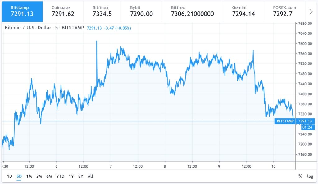 Il prezzo di Bitcoin è tornato in una zona ribassista sotto i 7.400 dollari dopo aver cercato il rimbalzo. Il supporto è quotato a 7.280 dollari, una soglia di particolare importanza per sostenere il suo rimbalzo più considerevole.