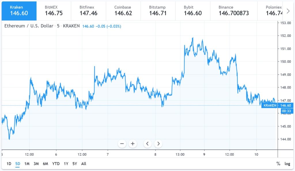 Ieri, infatti, Ethereum ha fatto un altro tentativo di superare l’area di resistenza di 152 dollari, ma ha fallito tale obiettivo, formando un massimo a 152 prima di calare. Il prezzo Ethereum è dunque sceso al di sotto dei livelli di 150 e 148 dollari, e poi ha infranto anche la media mobile semplice a 100 ore. Ora sembra inoltre essere in grado di testare un supporto chiave a 146 dollari: se il prezzo non dovesse rimanere al di sopra del supporto in questione, potrebbe diminuire ulteriormente verso l’area chiave di 144 dollari. Eventuali ulteriori perdite potrebbero portare Ethereum verso il livello di 142 dollari nel breve termine.