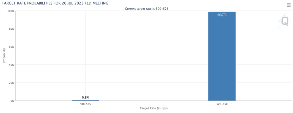 Le previsioni sul prossimo FOMC sono di 25 punti base di rialzo, dopo che durante la precedente riunione si era invece deciso di sospendere i rialzi.